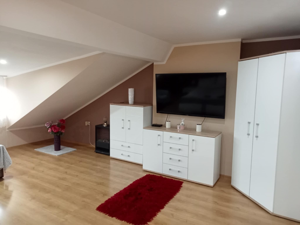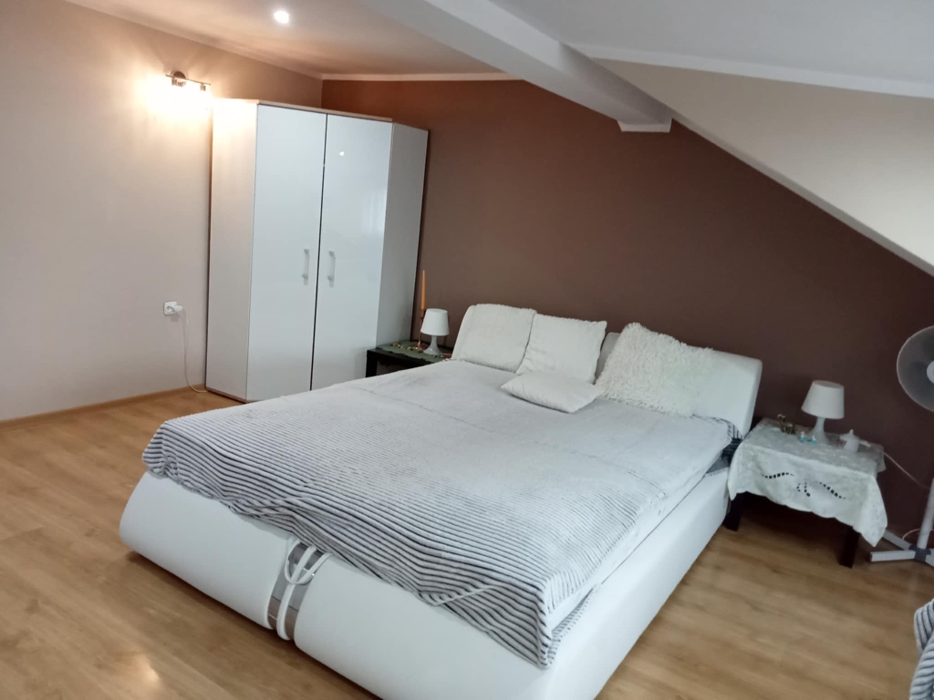 NA DRUGIM PIĘTRZE JEST DUŻA , WYGODNA SYPIALNIA OKOŁO 34M2 .MNIEJSZY POKÓJ ORAZ ŁAZIENKA Z PRYSZNICEM I WC .