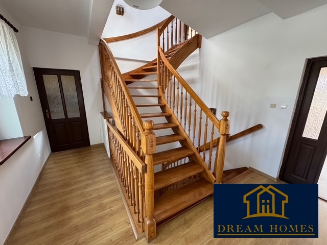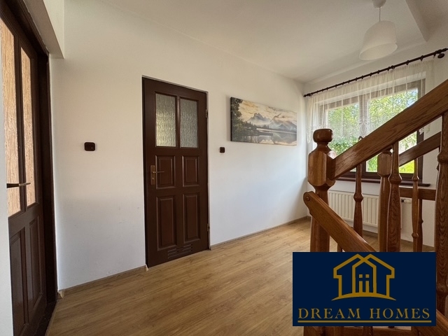 Na parterze znajdują się miedzy innymi wiatrołap, hall z pięknymi schodami z drewna , garaż o powierzchni 16 m2 .kotłownia z pralnią 23 m2 oraz 2 pomieszczenia o powierzchni 9 m2 i jedno 10 m2 , które mogą zostać połączone w jedno . Osobne WC , mały przedpokoik i drugie wejście z boku domu. .
