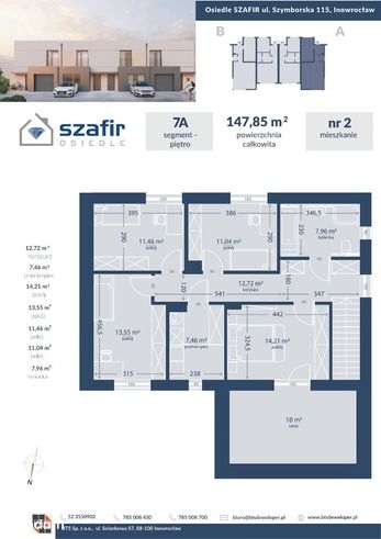 Przedmiotem sprzedaży jest unikatowy apartament dwukondygnacyjny o powierzchni łącznej 145,73 m2 o funkcjonalnym i przemyślanym układzie pomieszczeń, z tarasem 18 m2, miejscem postojowym w garażu i dodatkowym miejscem parkingowym przed budynkiem.W skład budynku wchodzi:- na parterze: salon z aneksem kuchennym (35,84 m2), garaż (18,94 m2), WC 91,82 m2)- na piętrze: 4 pokoje - 14,21 m2, 13,55 m2, 11,46 m2, 11,04 m2, łazienka 7,96 m2, pralnia 7,46 m2Znakomita alternatywa dla osób nie chcących mieszkać w bloku i ceniących sobie życie na klimatycznym, niewielkim, zamkniętym osiedlu domków. Niewątpliwym atutem wszystkich apartamentów jest przynależny ogródek, umożliwiający spędzanie czasu na świeżym powietrzu, rolety zewnętrzne zamontowane we wszystkich oknach oraz miejsce postojowe przed budynkiem. Mieszkania wyposażone będą w piece gazowe kondensacyjne, podejście do stacji uzdatniania wody (możliwość samodzielnego zamontowania stacji uzdatniania wody), instalację elektryczną (z osprzętem typu gniazda, włączniki) i teletechniczną, trzyszybową stolarkę okienną z ciepłym montażem, natomiast budynek podłączony będzie do miejskiej kanalizacji sanitarnej oraz wodociągu. Do budowy zastosowano najnowsze technologie oraz materiały wysokiej jakości, aby zapewnić najwyższą jakość docelowego produktu. Elewacja budynków jest zaprojektowana w duchu nowoczesnej architektury. Ponadczasowe połączenie bieli, ciemnej szarości i jasnej płytki umożliwi harmonijne wkomponowanie się osiedla w otaczające je urokliwe otoczenie.Co warte podkreślenia, mieszkania są bezczynszowe, a klienci w momencie zakupu nie są zwolnieni z zapłaty podatku od czynności cywilnoprawnych (PCC 2%).